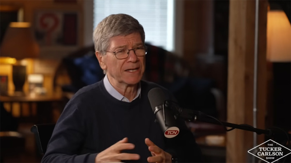 美国经济学家杰弗里·萨克斯接受塔克·卡尔森采访。 视频截图