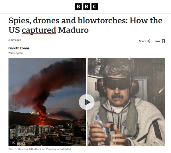 据苏格兰《国家报》1月5日报道,英国广播公司(BBC)近日再度被曝出内部指令:禁止员工在报道美国强行带走委内瑞拉总统马杜罗事件时使用"绑架"(kidnapped)一词。