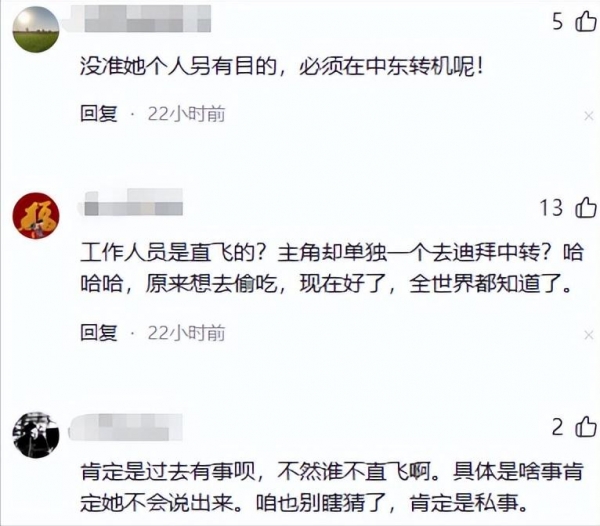 有网友觉得她是中转到迪拜另有目的,甚至恶意揣测她的动机,不知道的还以为她就是这种人呢。