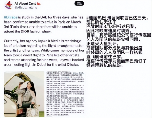 事情的起因是她即将要参加巴黎大秀,结果却意外被困在了迪拜,一时间网上议论纷纷。