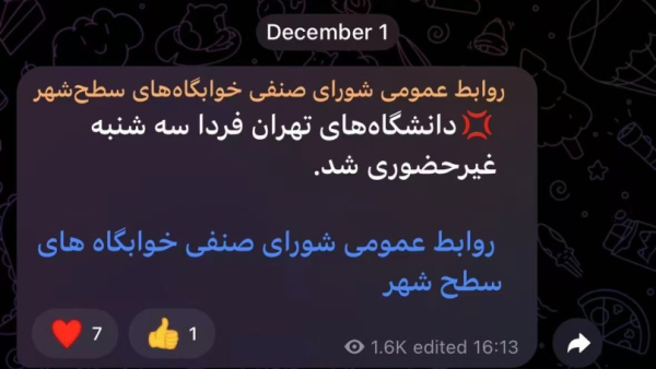 然而,这场历史悲剧非但没有成为伊朗人不幸的休止符,反而成为现实悲剧的预告片。截至12月1日,德黑兰高校再次宣布集体"居家上网课"后,深陷危机的德黑兰已经连续停摆9日,正在德黑兰大学访学的笔者"被迫"享受了人生的第一次9天"大长假"。