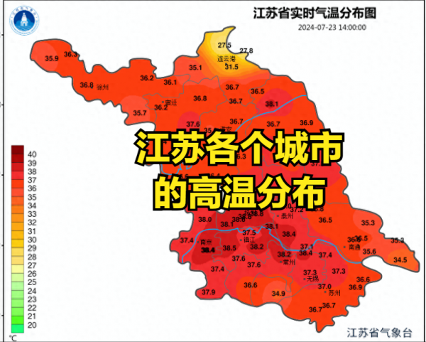 7月23号,江苏省气象台紧急升级高温橙色预警。南京、镇江、苏州等地日最高气温直冲37-39℃,局部地区甚至逼近40℃。徐州、连云港等地稍低,但35-36℃的高温依然让人难以忍受。