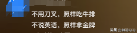 有网友表示,这就是冠军,不用刀叉中央吃牛排,不用英语,照样拿金牌。