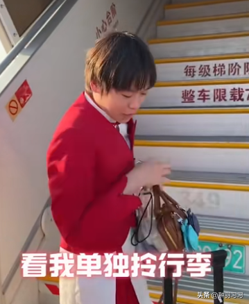 现在前往香港路上,接受记者采访的时候,直接给大家表演了一个"单手领行李"。