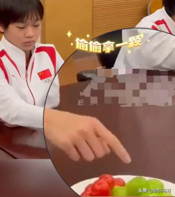 在奥运会运动员在港大汇演中心开会时,其他运动员都因为开会感觉有些饿的时候,全红婵直接丝毫不客的冲会议桌上的水果拼盘下手,薅了两个葡萄。