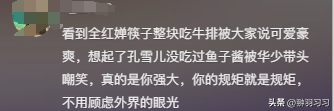 还有网友表示,看见全红婵用筷子吃牛排被大家说可爱,就想起来之前一位明星因为没吃过鱼子酱代其他人带头嘲笑。