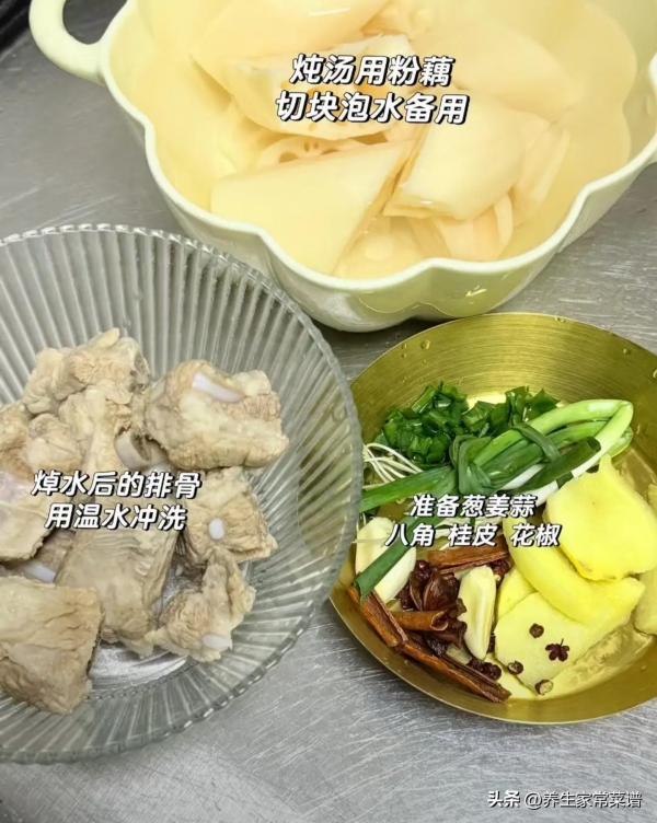 食材处理小技巧:排骨冷水下锅,加两片姜,煮出血沫后捞出冲洗干净,汤更清亮;莲藕去皮后泡在清水中,加几滴白醋,防止氧化变黑;红枣洗净后去掉核,吃着不硌牙,也避免太甜腻。