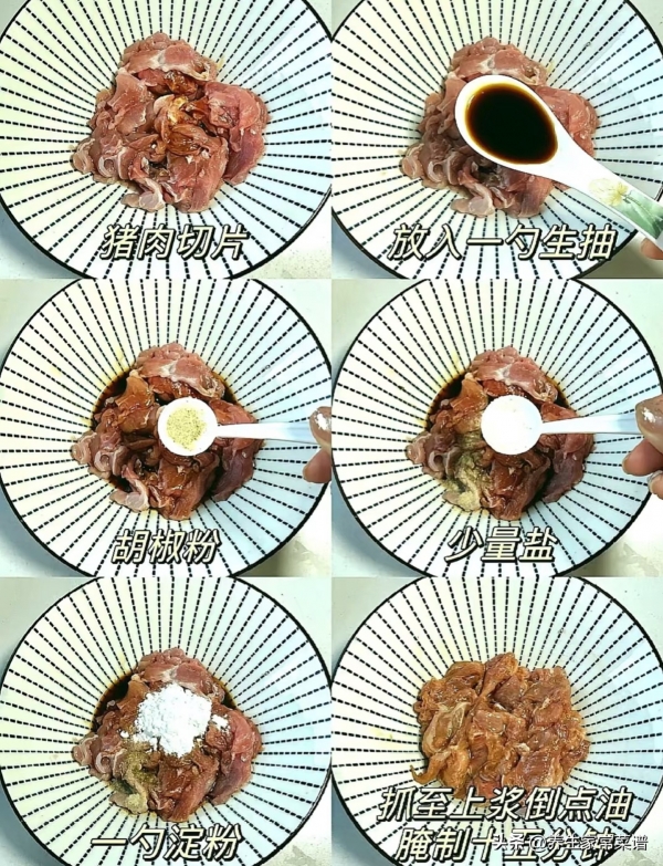 食材处理小技巧:猪肉逆着纹理切薄片,用生抽+少许淀粉抓匀腌10分钟,炒出来更嫩不柴;鸡蛋打散后加少许温水,炒出来更蓬松软嫩;食材切的时候尽量切得均匀,炒的时候更容易入味。