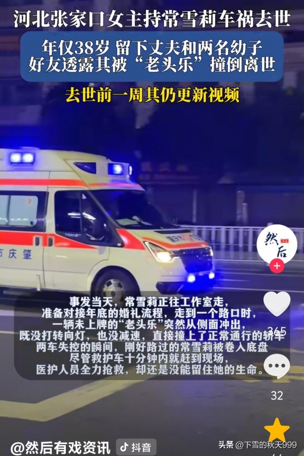 附近的人员见状立刻就报警了,当地的120在十分钟之内就赶到了现场救援,遗憾的是常雪莉最终因伤势过重抢救无效不幸死亡,留给了家人无尽的悲痛。