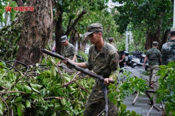 9月7日凌晨4时起,海南省军区陆续组织4600余名民兵投入抢险救援,全力投入道路清障、疏导交通、协助恢复供电等任务。海口警备区出动100余名民兵,沿海榆中线海口段清理倒树、开辟通路、疏导交通,确保重要交通枢纽畅通。
