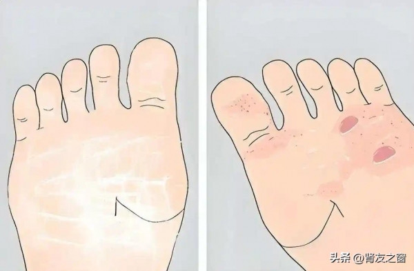 早期糖尿病肾病患者,肾脏排泄毒素的能力开始下降,尿素、肌酐等代谢废物在体内堆积,会通过皮肤排泄(形成 "尿素霜"),刺激皮肤神经末梢,导致全身瘙痒,而脚部因血液循环较差,症状往往更明显。此外,高血糖会导致皮肤屏障功能减弱,脚部干燥脱屑,抓挠后容易破溃(难愈合,易感染)。