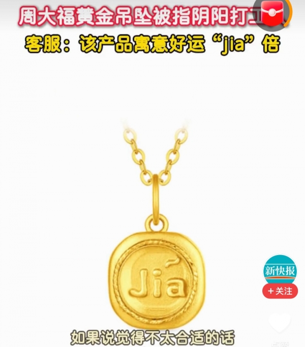 事件发酵始于一位广东网友的吐槽,直言"收了这个你就是金牌牛马",相关言论迅速扩散。在年轻打工人语境中,"牛马"早已脱离传统"勤劳奋进"的褒义,成为"被迫加班、默默承压"的自嘲代名词,而"jia"也被联想为"加班",让这款高价金饰沦为"职场苦难认证"。面对争议,周大福客服回应称产品销量火爆,会记录反馈并优化,同时强调设计沿用传统文化意象,无冒犯之意。