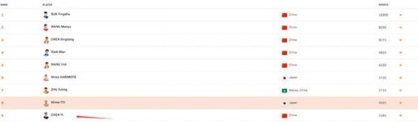 陈熠目前积分是3185分,她距离世界第五的王艺迪4150分也不到1000积分而已,北京大满贯女单冠军赛积分是2000分,如果这一站陈熠可以登顶,或者进入冠亚军争夺的话,说不定她就冲入世界前五行列了,陈熠进入世界前五真的不是梦。