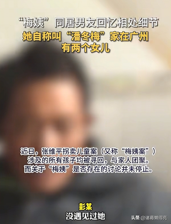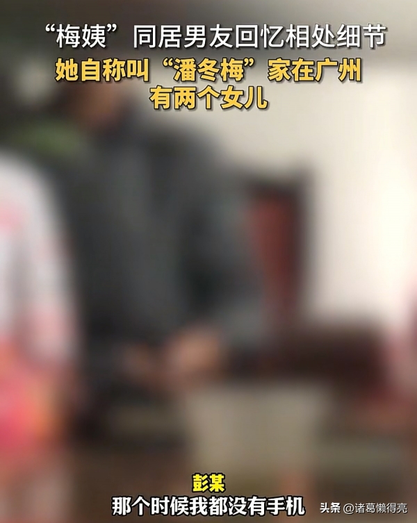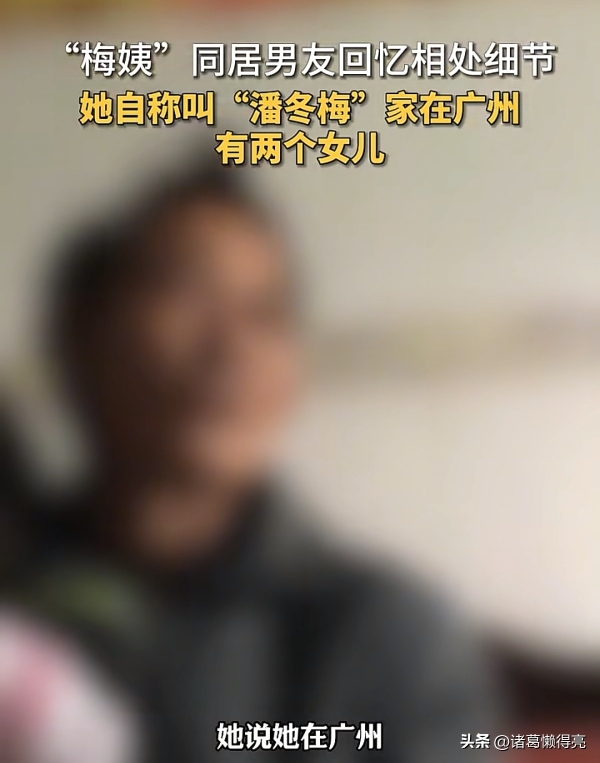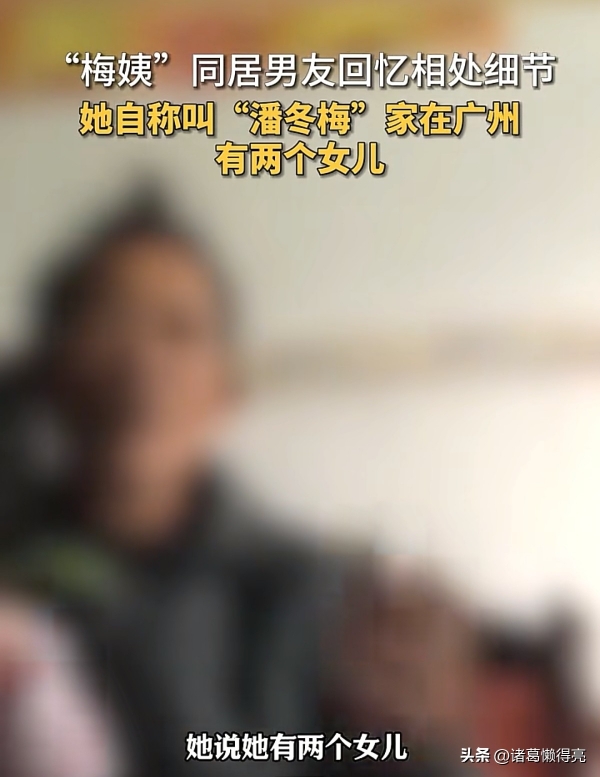 据梅姨的男友说,她根本不是模拟画像上那个凶巴巴的女人,反而话少、内向、说话温温柔柔,一口流利粤语和客家话,带着浓浓的广州腔,完美给自己立了个苦情顾家妈妈人设:家在广州,有两个女儿,一个已经成年,一个还在上学,自己在外奔波打工,就是为了给女儿多挣点生活费。