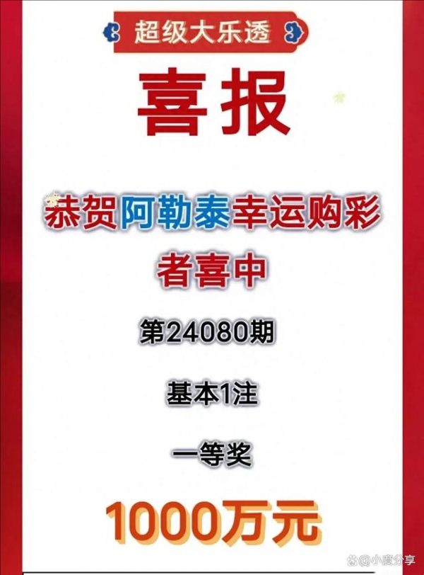 7月22日,新疆阿勒泰的李先生迎来了他人生中的高光时刻--他凭借一张机选的10元5注号码的大乐透单式票,一举揽获了1000万元的大奖!这注大奖出自大乐透第24080期,当期全国共中出3注一等奖,每注奖金高达1000万元,分别花落安徽、福建和新疆。而新疆这注一等奖,正是被李先生这位幸运儿所中得。