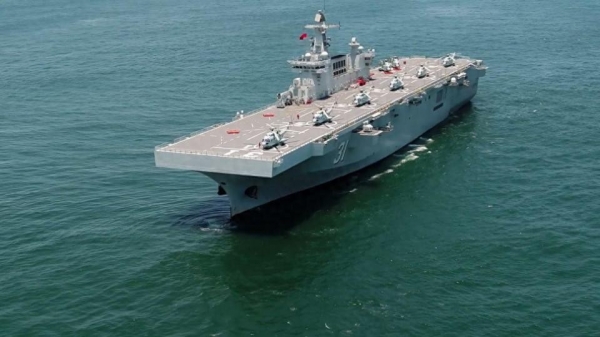 武装有1130近防炮、红旗-10导弹,还有诱饵发射器。能带1000多名陆战队员,外加坦克和两栖车。