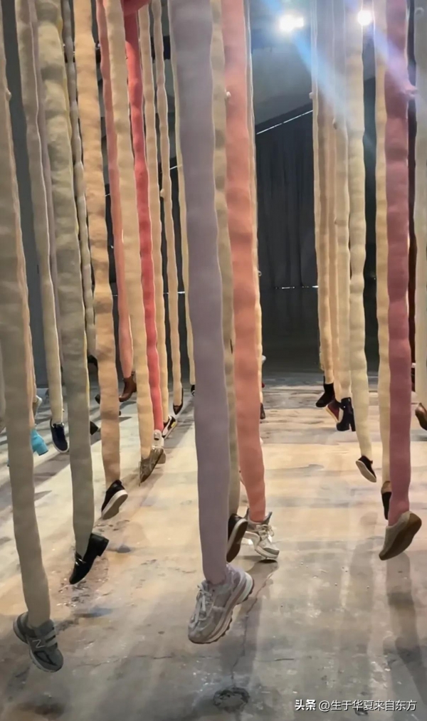 更值得关注的是,上海并不是第一次出现这类诡异展。之前新天地曾展出过"悬空大长腿"装置,穿着高跟鞋的腿凭空垂吊,深夜路过的市民被吓得不轻,同样引发过一波投诉。