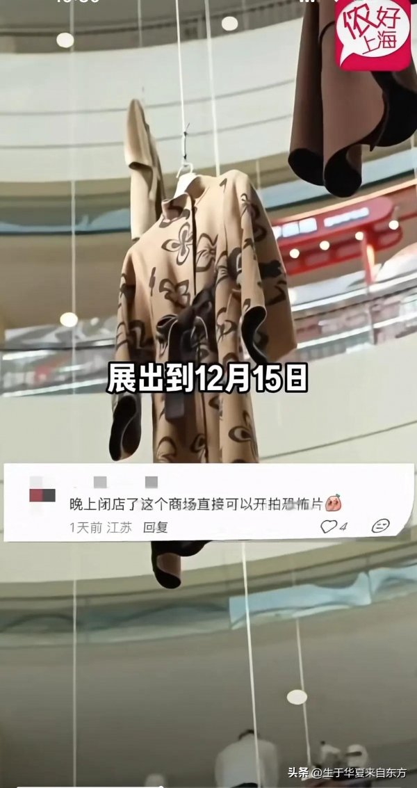 不少市民逛到中庭瞬间感到不舒服,带娃家长更是崩溃。有小朋友指着悬空大衣哭喊"像没有头的人",紧紧抱住家长不敢抬头,老人被晃悠的衣摆惊得脚步踉跄,商场客服台很快被投诉电话和现场反馈挤爆。