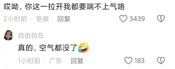 有网友表示,你这一拉开我都要喘不上气了,空气都没有了。