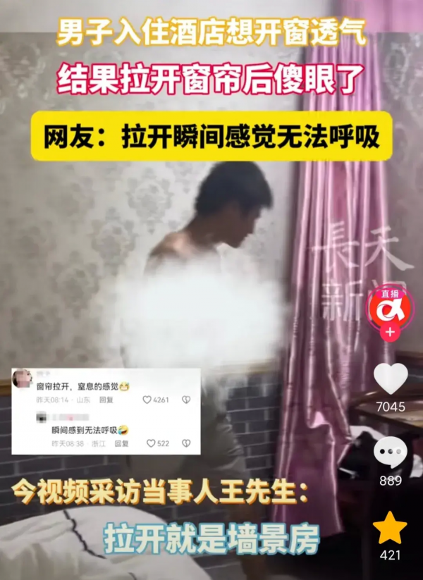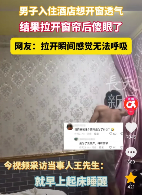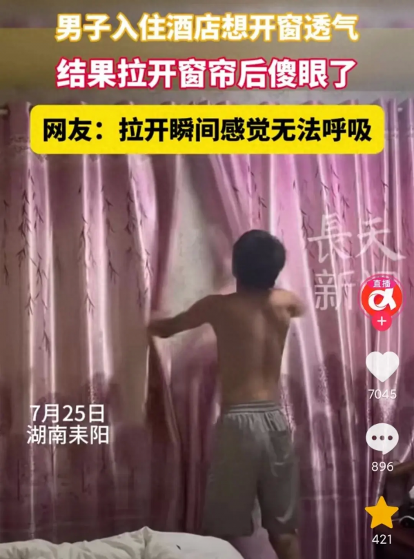 湖南耒阳,男子入住酒店想开窗透气,结果拉开窗帘后傻眼了。