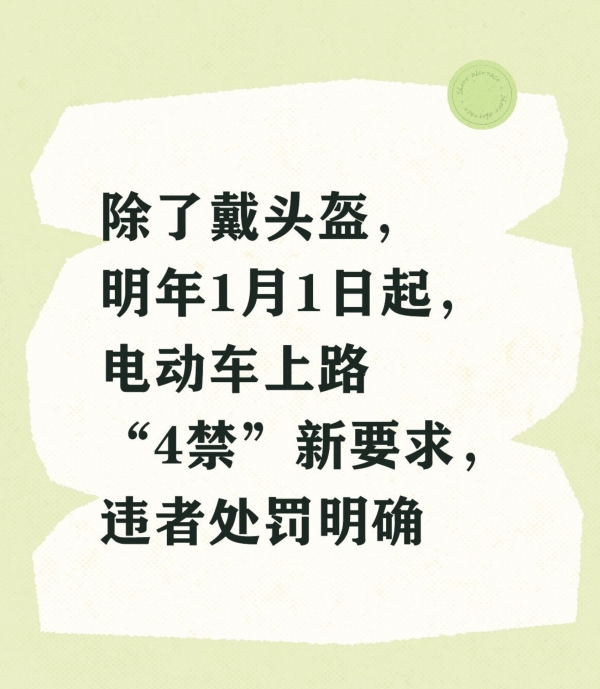 现在骑电动车戴头盔,早就是大家的共识了,但从明年1月1日起,只戴头盔可没法安心出门。全国多地都要执行电动车"4禁"新规,这不是一阵风的抽查,是长期管用的硬规矩,每一条都写得明明白白,违规了罚多少钱、要不要扣车,甚至会不会影响信用,各地都有说法,没有模糊地带。