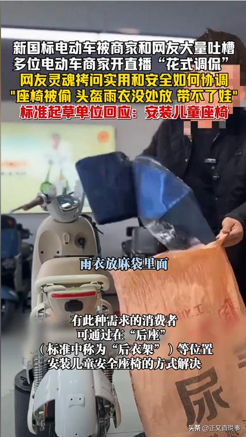 此外,也有商家表示,自从新国标电动车上市后,他一辆都没卖出去,还有商家称自己卖出去后,有好几个顾客称越跑越慢要退货,更有商家更是拍视频,教大家用一个麻袋完成日常收纳。