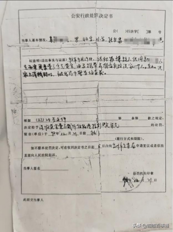 但马先生父亲当年收到的,是一张《行政处罚决定书》。 这成了警方"合法合规"的基石。