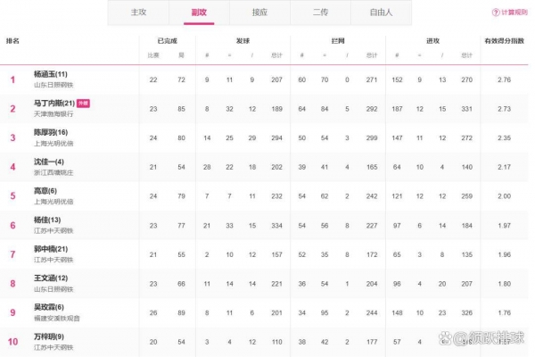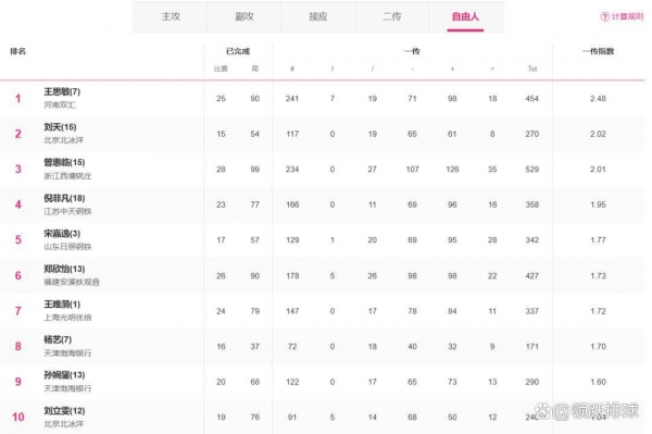 随着中国女子排球超级联赛2025-2026赛季的战幕缓缓落下,联赛官方适时更新并正式公布了五大关键位置(主攻、副攻、接应、二传、自由人)的详尽数据榜单,最终的赛季排名也尘埃落定。这份榜单的揭晓,立刻在排球迷和专业人士中引发了广泛而深入的讨论,其所反映的诸多变化和趋势,值得我们细细解读。