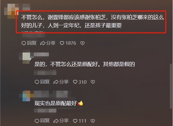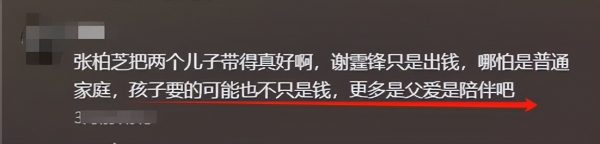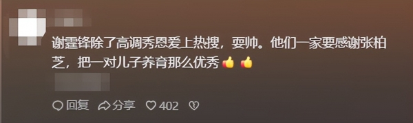 "谢霆锋除了高调秀恩爱上热搜,耍帅。他们一家要感谢张柏芝,把一对儿子养育那么优秀。"