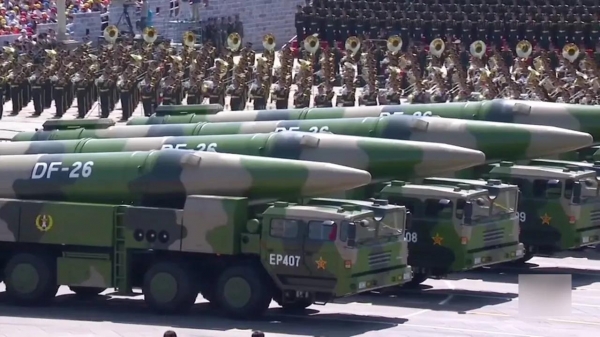 东风-26D:中远程导弹,射程4000公里,突防速度超过5马赫,外号"关岛快递",兼具反舰能力,乘波体弹头,可覆盖区域目标。
