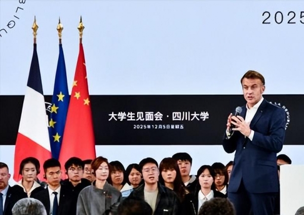 12月5日下午,四川大学的校园里挤满了热情的学生,当马克龙出现时,欢呼声响成一片。