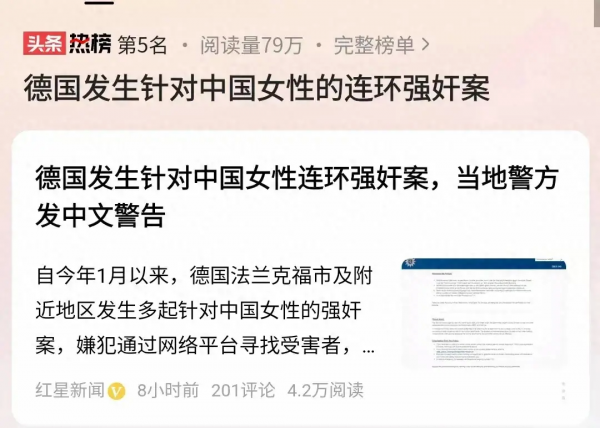 在德国,我们的中国姐妹们竟然成了连环强奸案的目标。