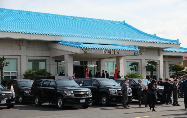 (中美釜山会晤的金海国际机场第五空中机动飞行团迎宾设施"Narae Maru")