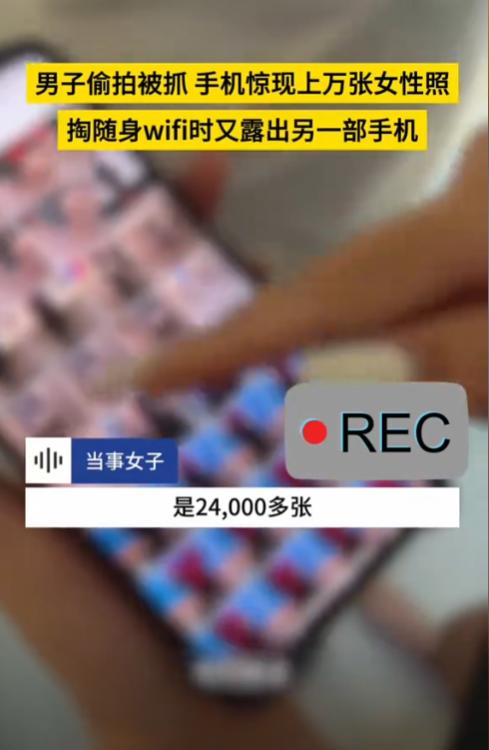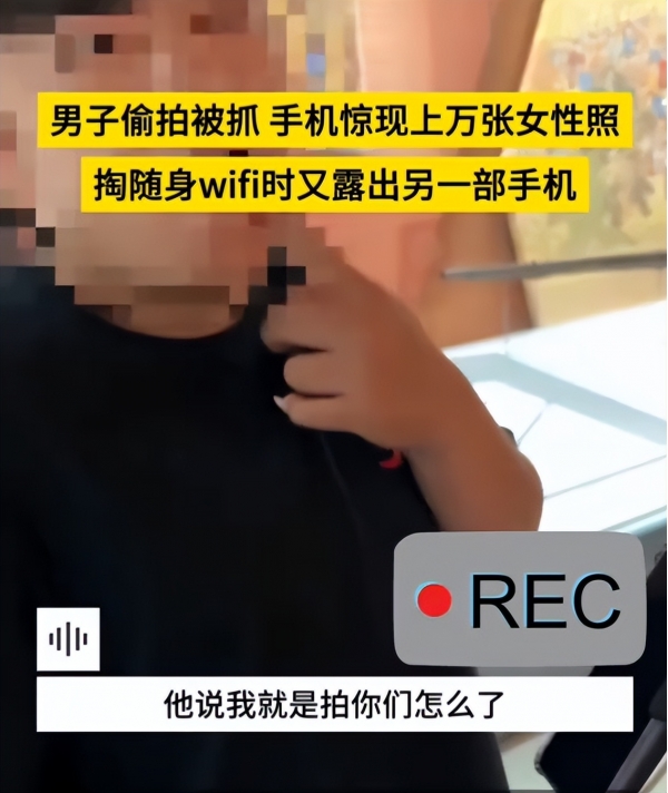 偷拍男子虽然只用了手机,但手机后壳不知是连着自拍杆还是随身WIFI,总之看起来很专业。