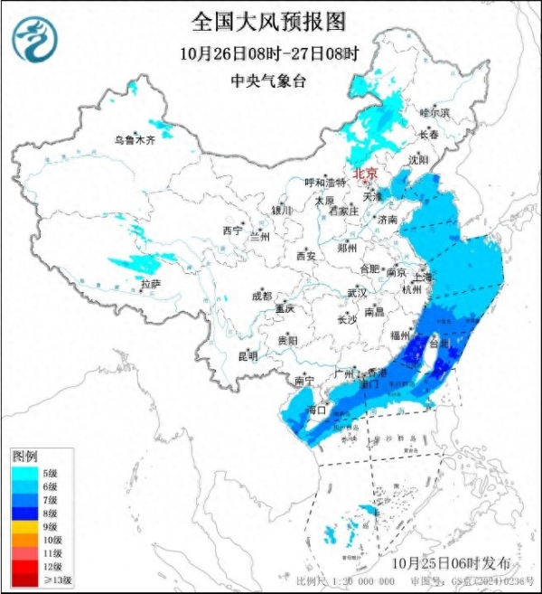 降水过后,各地气温将下降4~6℃,西北部局地降温幅度甚至可达8~10℃。与此同时,26日至28日白天,大部地区还将迎来6~7级阵风,东部局地阵风可达8~9级。