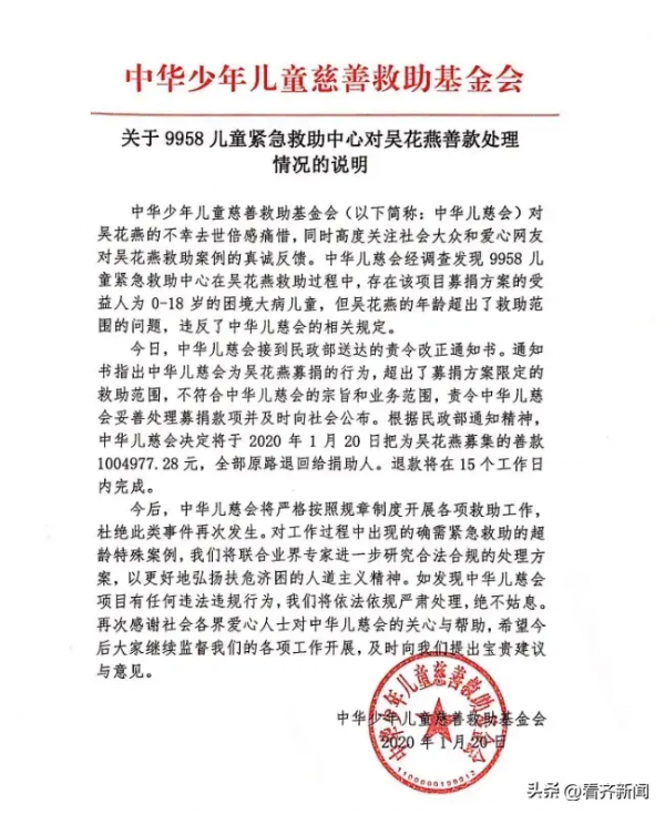 更早时候,2020年1月,中华少年儿童慈善救助基金会就媒体报道"43斤女大学生获捐百万仅收到2万"一事也是引发热议。