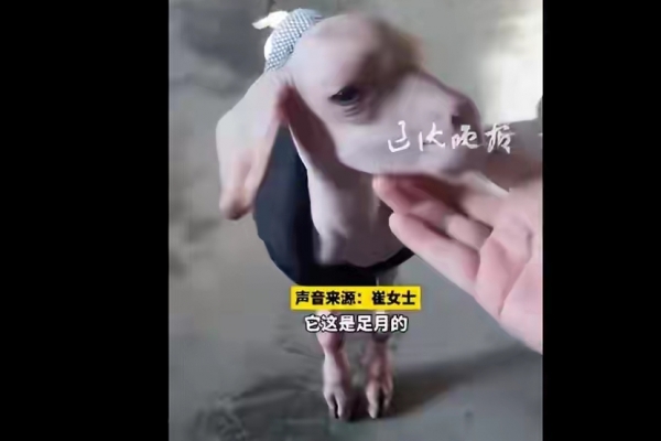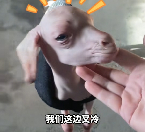 另一只则全身光秃秃的,皮肤直接暴露在外,连头顶和四肢都没有丝毫毛发,模样格外特别。