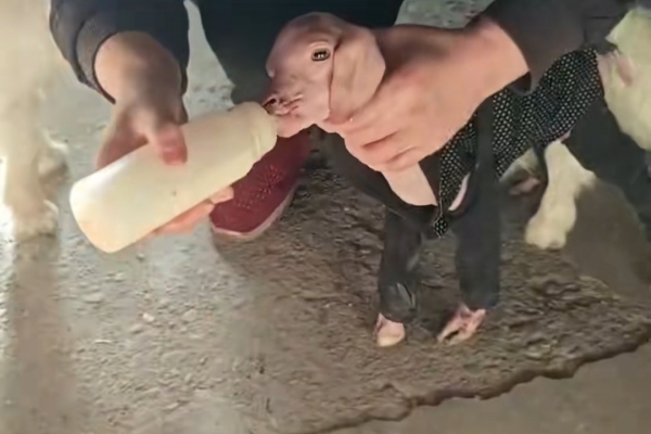 好在两只小羊都很健康,尤其是这只无毛小羊,虽然没毛护体,却格外活泼好动,吃奶也很积极,精气神一点不输有毛的同胞兄弟。