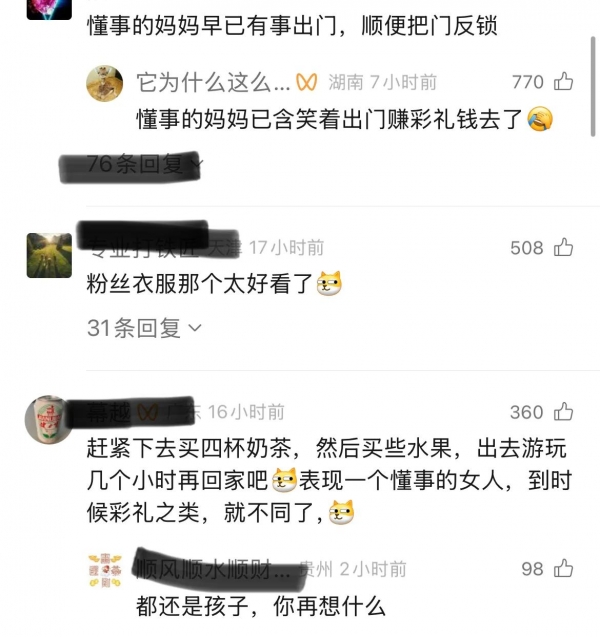 还有网友说,懂事的妈妈早已经外出有事,不会在家里像电灯泡一样看着儿子。