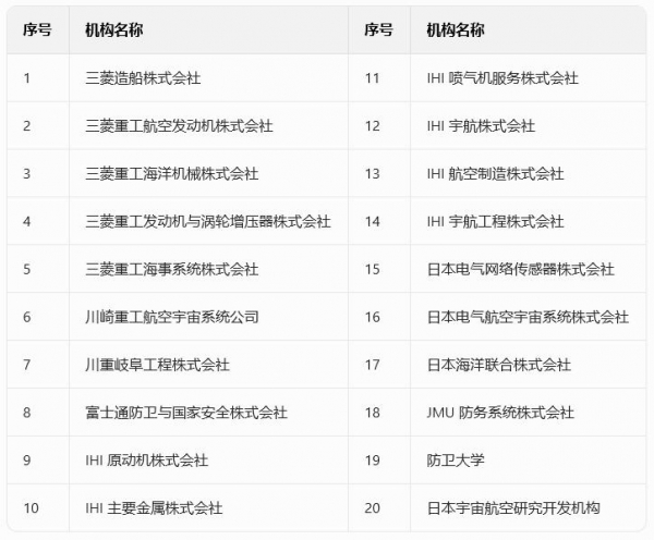 从名单来看,这20家日本实体没有一家是无名之辈,三菱造船、IHI宇航、富士通防卫与国家安全株式会社等知名企业全都在列,甚至日本宇宙航空研究开发机构这类核心科研单位和防卫大学这种教育单位也在其中。