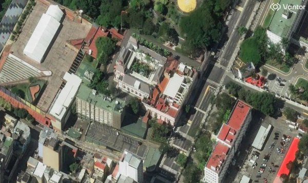 图为今年1月1日的委总统府观花宫(中央被环道包围的白红顶建筑)卫星照片,右上角十字路口对角的绿顶建筑为总统卫队兵营。目前无法证实美军强行控制马杜罗的地方是此处(马杜罗遇袭前已处于工作状态,可能去了国防部驻地蒂乌纳堡、或现已开放为文化中心的历史总统行宫La Casona,1月3日白天的反美抗议画面背景中的观花宫似未见明显损坏);现在可以确认的是,直到袭击发生一天前,观花宫周围没有任何路障或额外岗哨。