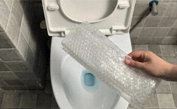 - 大气泡垫覆盖马桶口,四周胶带封好,中间再交叉贴几道加强。