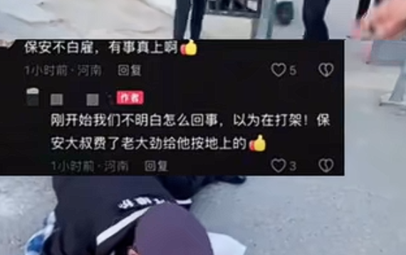 知情人称:刚开始我们不明白怎么回事,以为在打架!保安大叔费了老大劲给他按地上的