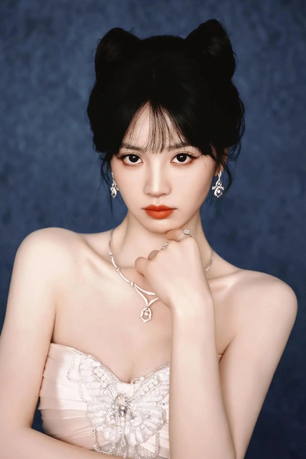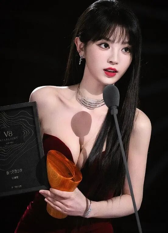田曦薇穿着银色抹胸衣裙,戴着名贵的银首饰,她俏脸甜美冷艳,乌黑的秀发梳成猫耳朵形状,露出白皙的香肩和事业线,绝对性感撩人!