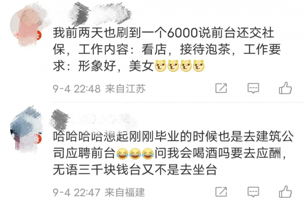 已经有网友把这个公司扒出来了,听说这个公司就只有一个员工,可能就是老板自己,这家公司也因为好多次招聘"前台"而被挂上热搜。