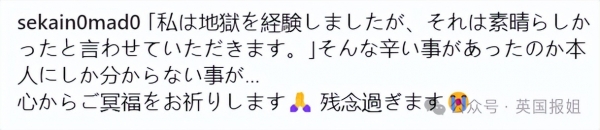 "'我从地狱归来,让我告诉你,这经历很棒。只有她知道,自己经历过什么苦难,愿美穗的灵魂安息,一路走好。"