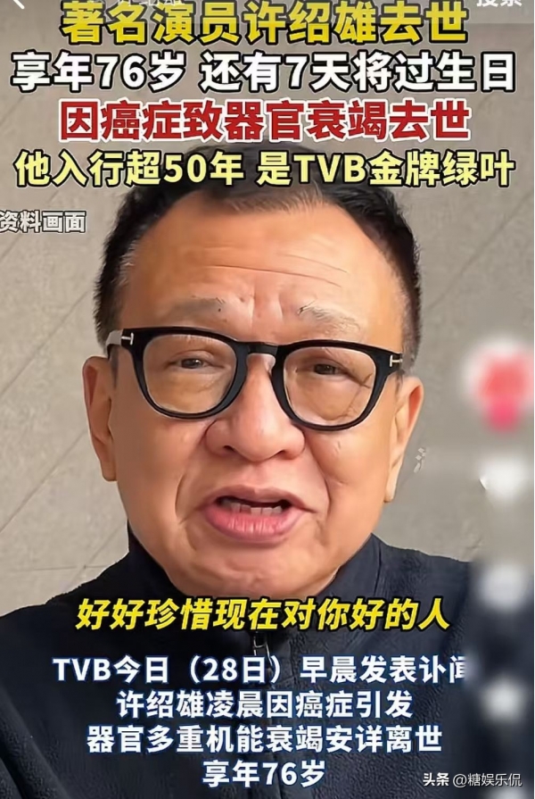 这个消息实在太突然了,许绍雄还有7天就将过生日,他拥有过"欢喜哥"等许多经典角色,是香港电视剧里的黄金配角。