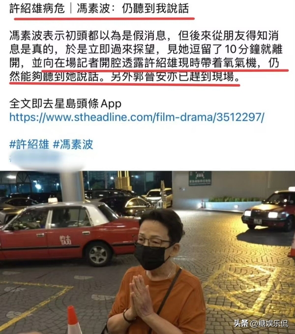 冯素波从医院出来后,很多记者都想知道许绍雄的近况,冯素波透露许绍雄戴着氧气面罩,能够听见她说话。