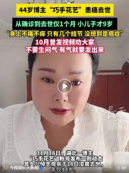 44岁,从发现结节到离世,仅仅一个月。你敢信吗?这事儿就真实地发生在了湖北一位博主身上。"病来如山倒",这座"山"塌下来的时候,可以这么快,这么悄无声息。