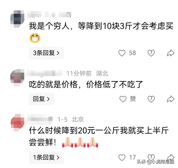 不过,即使车厘子有如此大的降幅,有网友依然不买单,调侃这不是穷人吃的起的贵价水果,更有甚者说等降到10元3斤才会考虑。